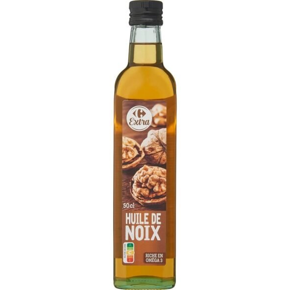 Carrefour Extra Walnut Oil is a refined and aromatic oil made from carefully selected walnuts. Appreciated for its smooth texture and delicate nutty flavour, this oil is ideal for enhancing both simple and refined dishes. Naturally rich in Omega-3, it combines taste and nutritional benefits.