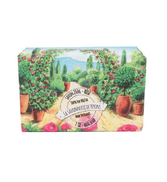 This 200g bar measures approximately 7 x 11 x 3 cm and arrives wrapped in its decorative paper. Enjoy the gentle scent of rose and the nourishing benefits of premium natural ingredients.