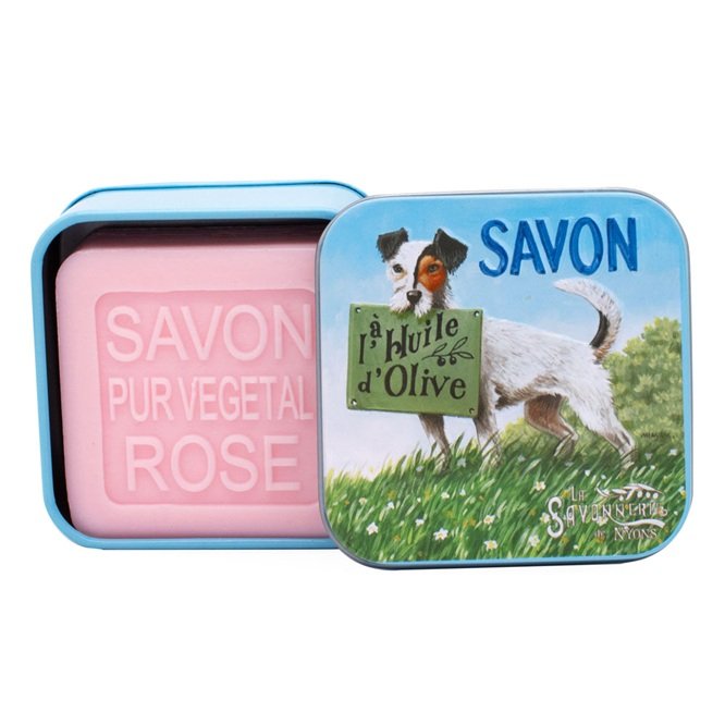 La Savonnerie de Nyons – Jack Russel Metal Tin & Rose Soap (100g)